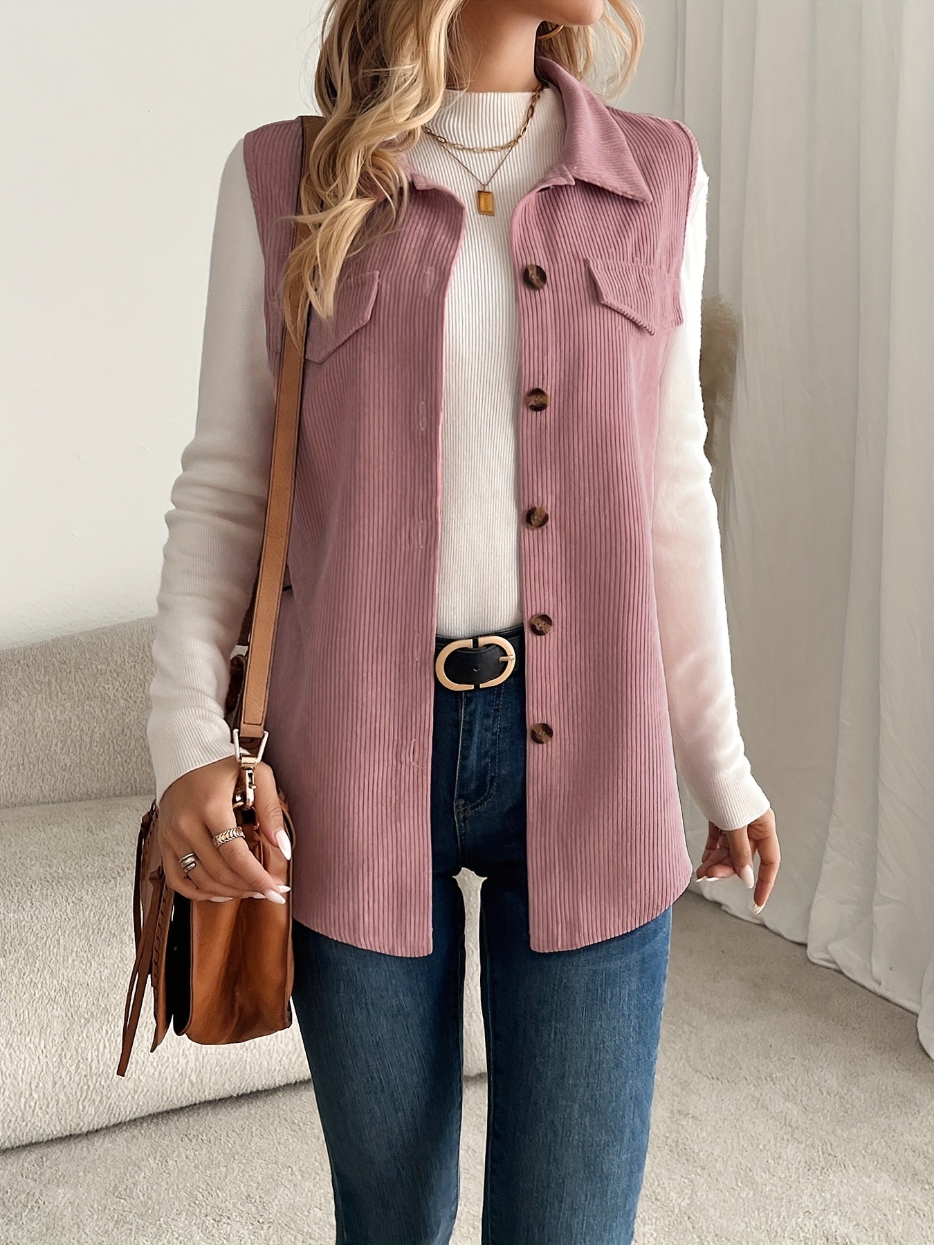 Women’s Corduroy Sleeveless Coat – Casual Layering for Spring & Fall