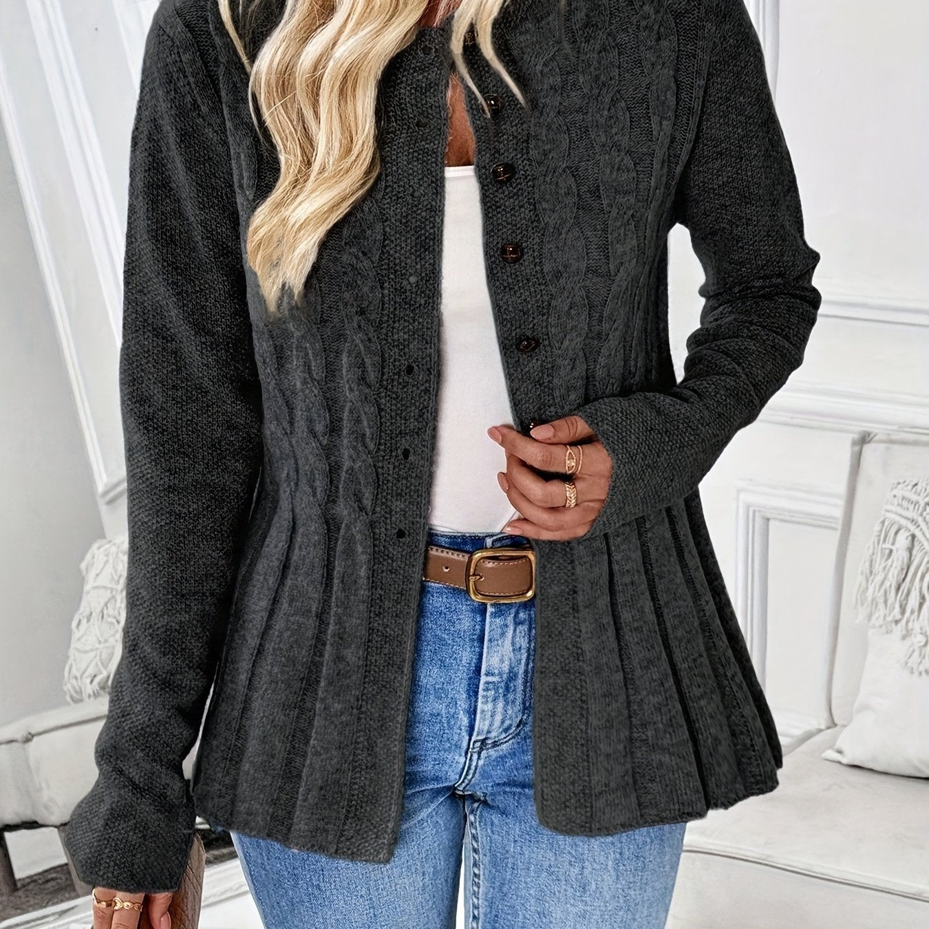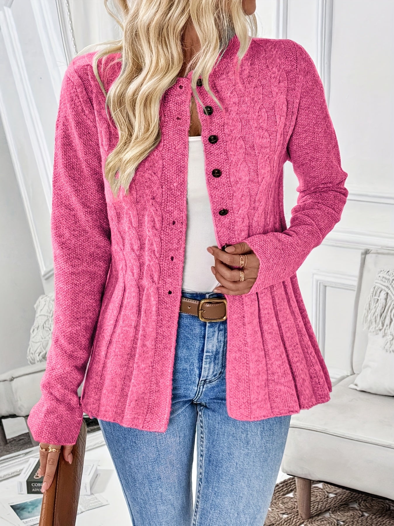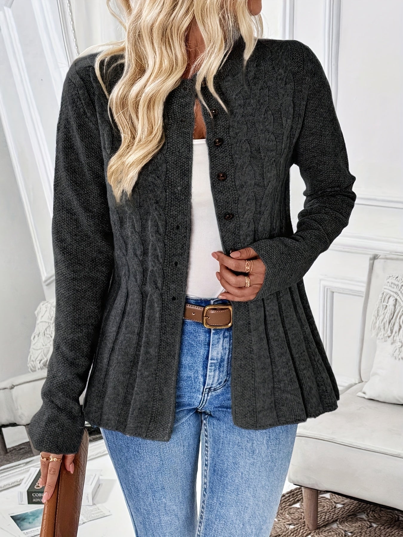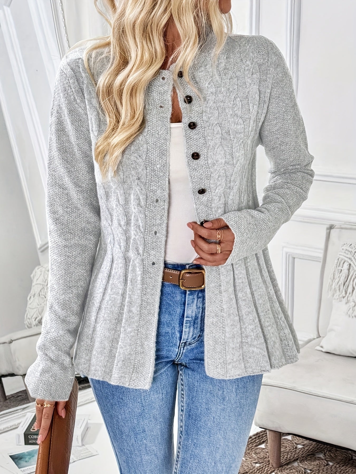 Women’s Cable Knit Pleated Hem Cardigan with Button Front