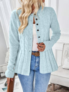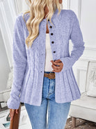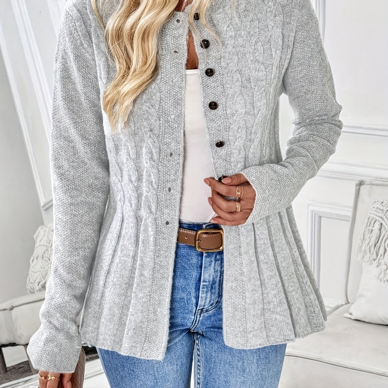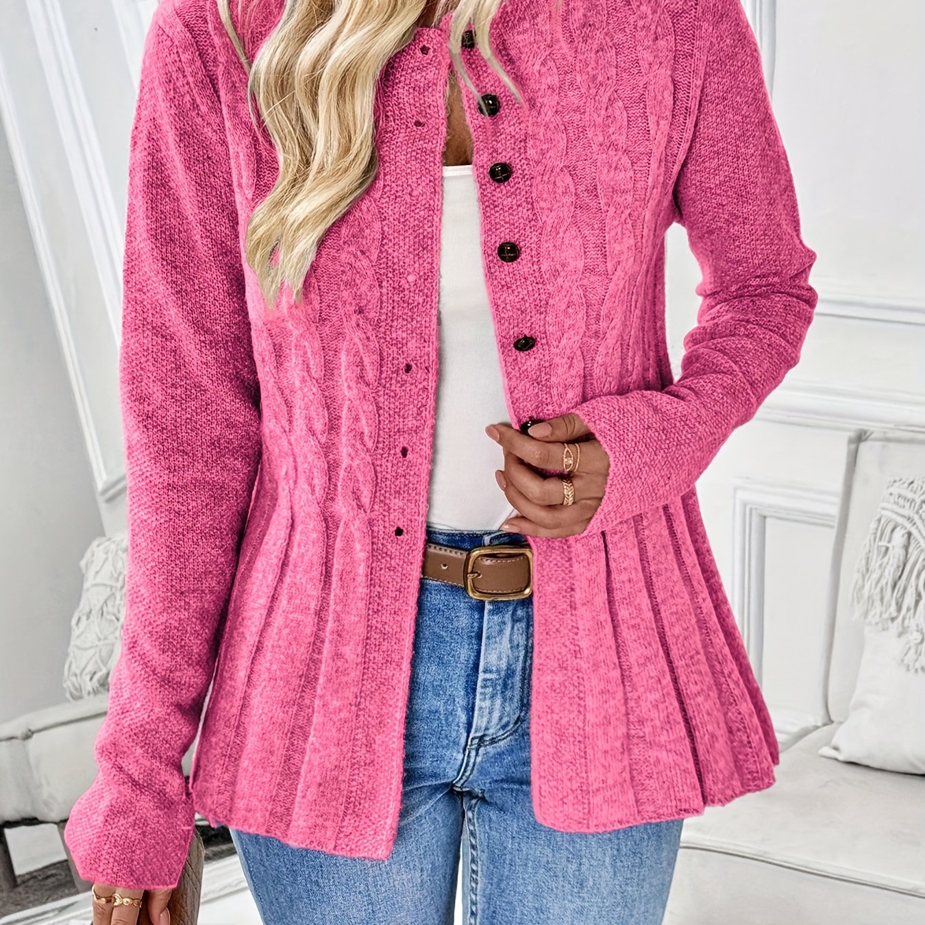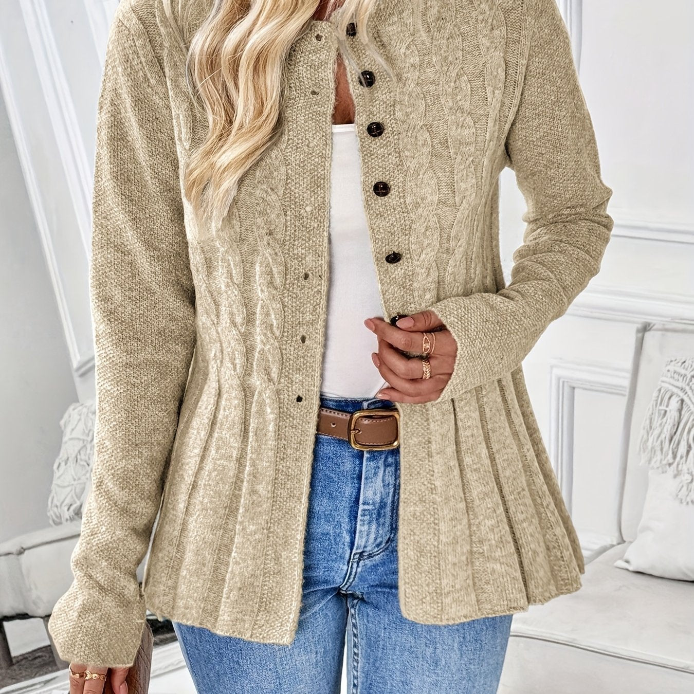 Women’s Cable Knit Pleated Hem Cardigan with Button Front