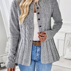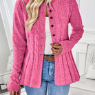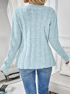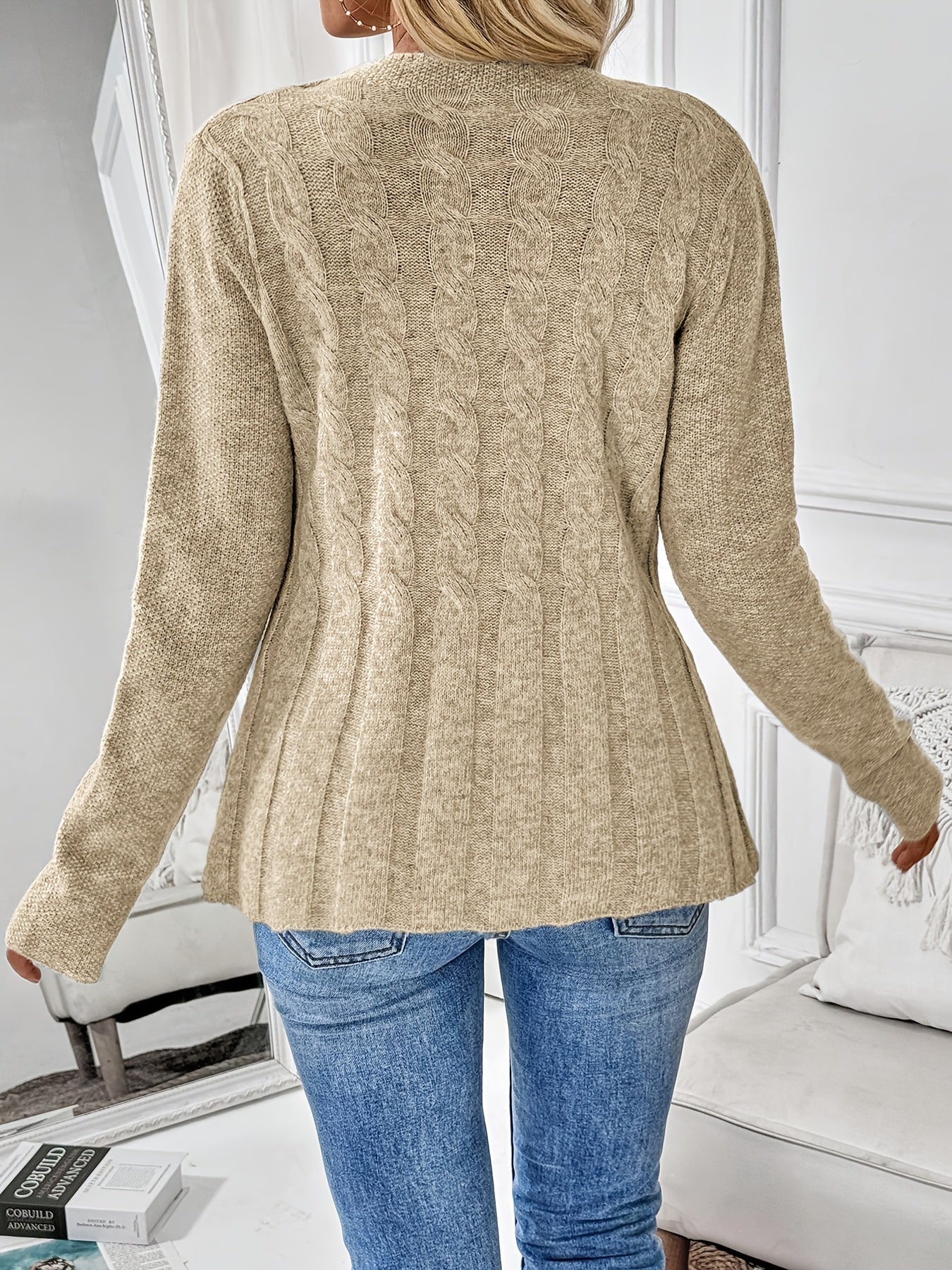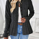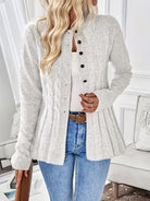 This Cardigan blends timeless knit texture with modern detail. Featuring a classic cable-knit front, pleated hem, and button-down closure, it adds elegance and comfort to your everyday wardrobe.