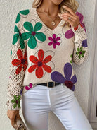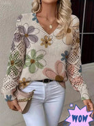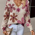 Women’s Casual Floral Knit Sweater with Crochet Sleeves