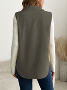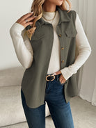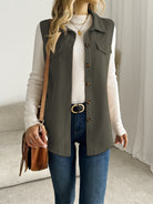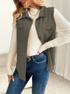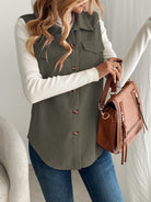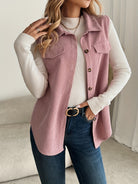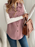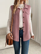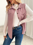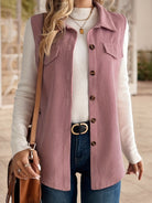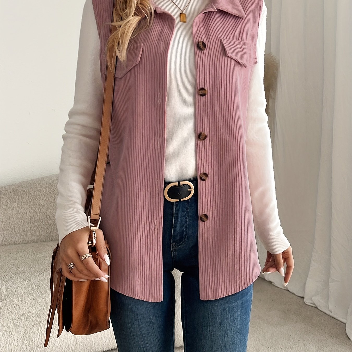 Upgrade your everyday outfits with this corduroy-inspired sleeveless coat, perfect for layering during the in-between seasons. Its button-down front and lapel collar create a polished yet casual look, making it a versatile addition to your wardrobe.