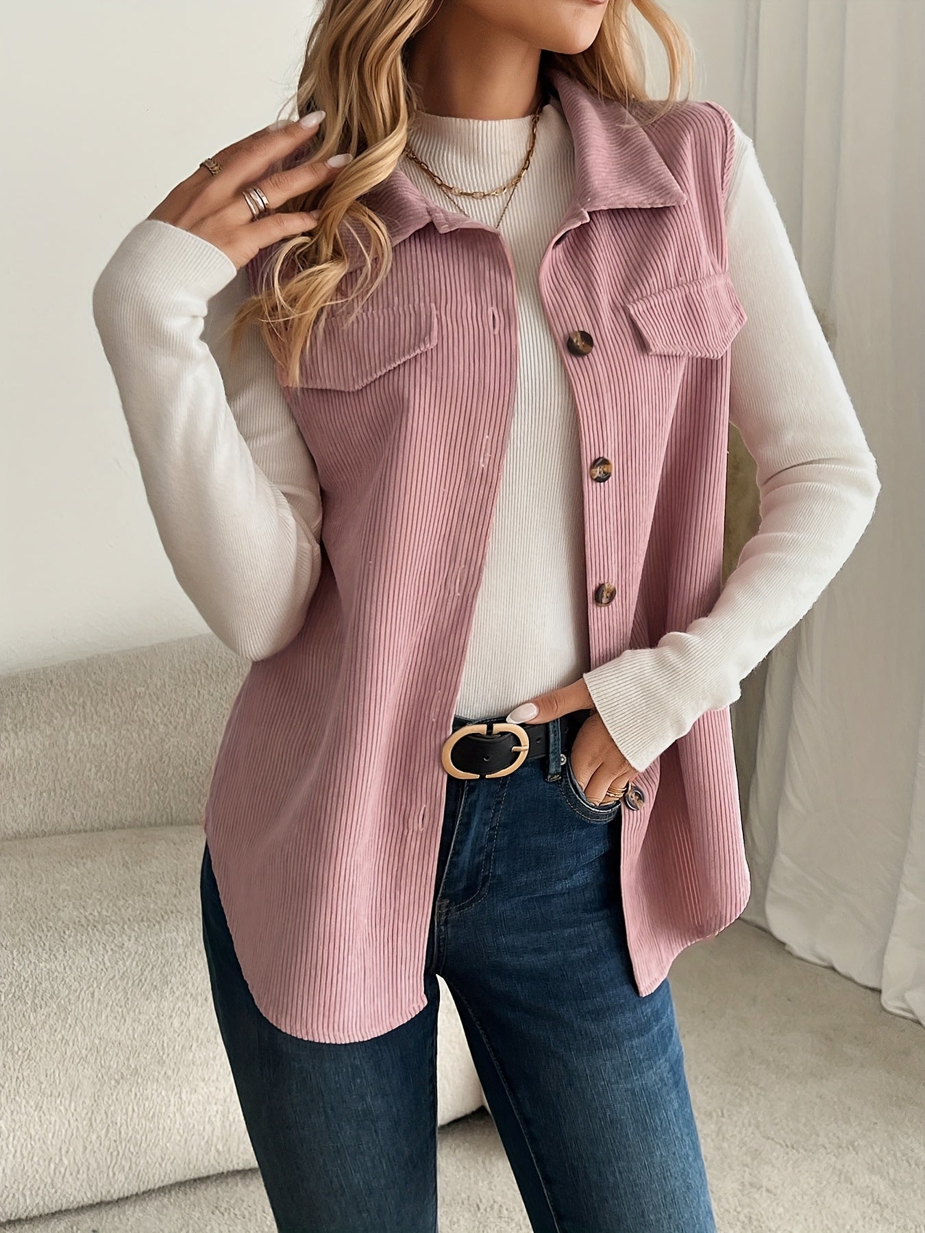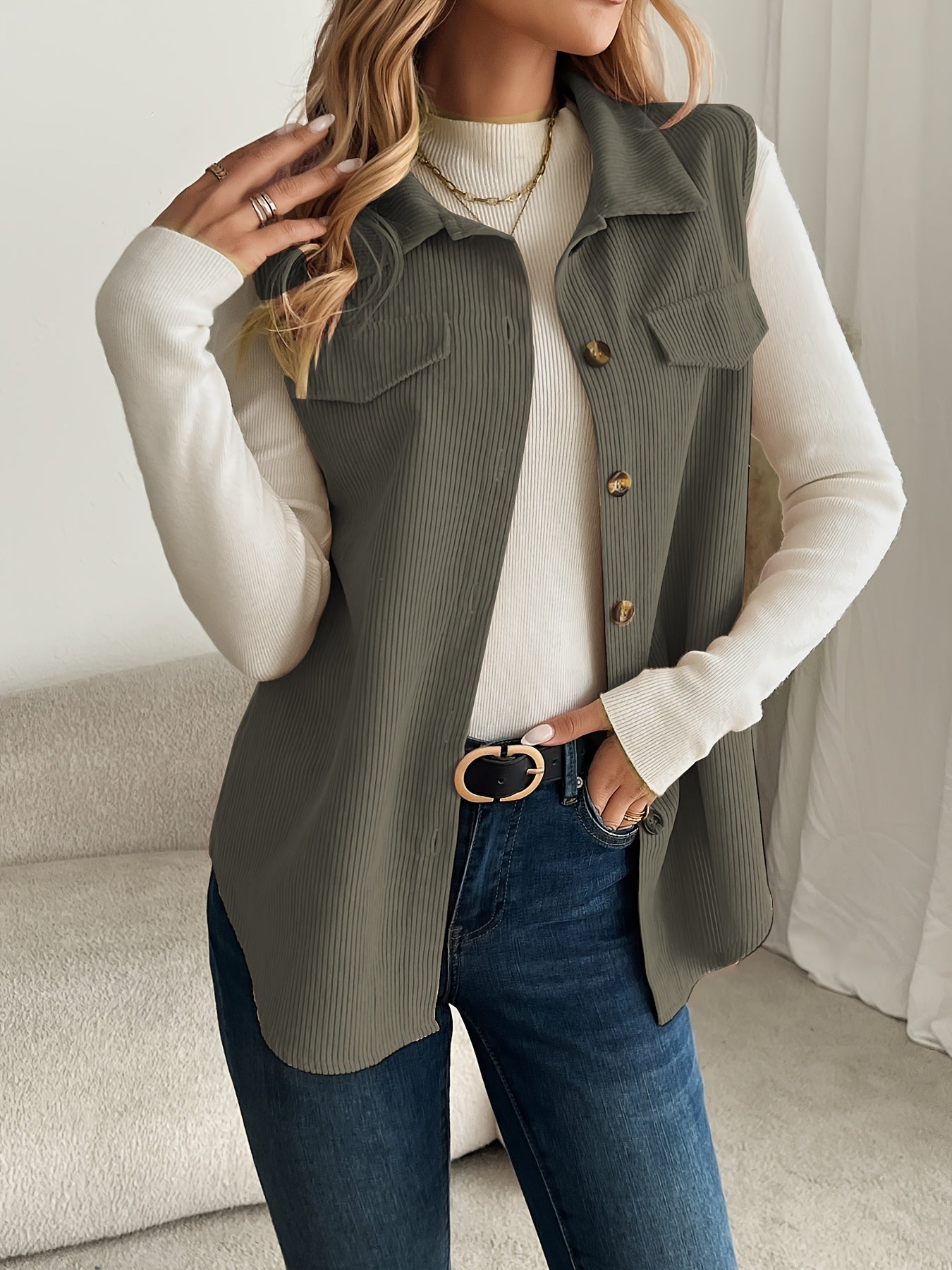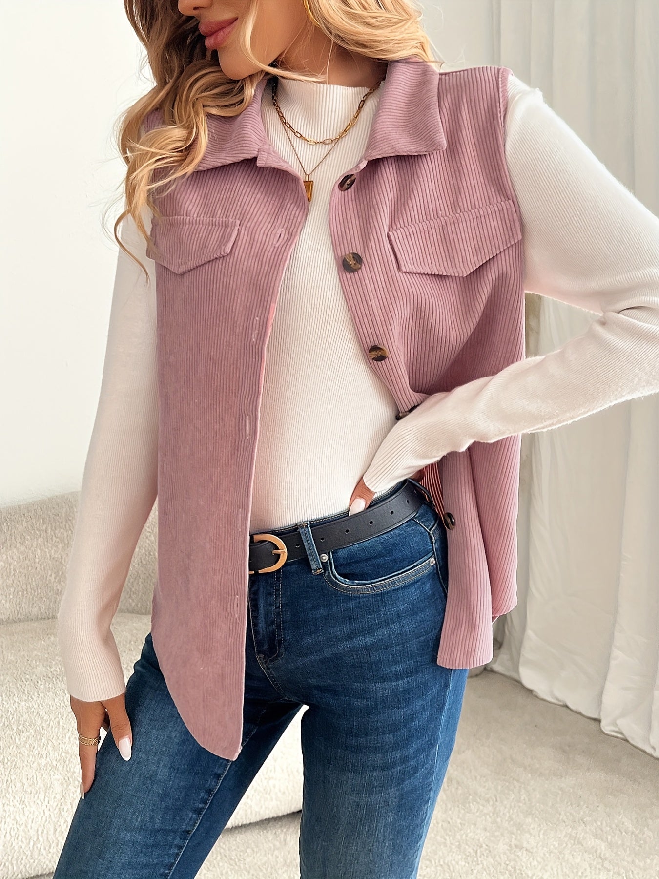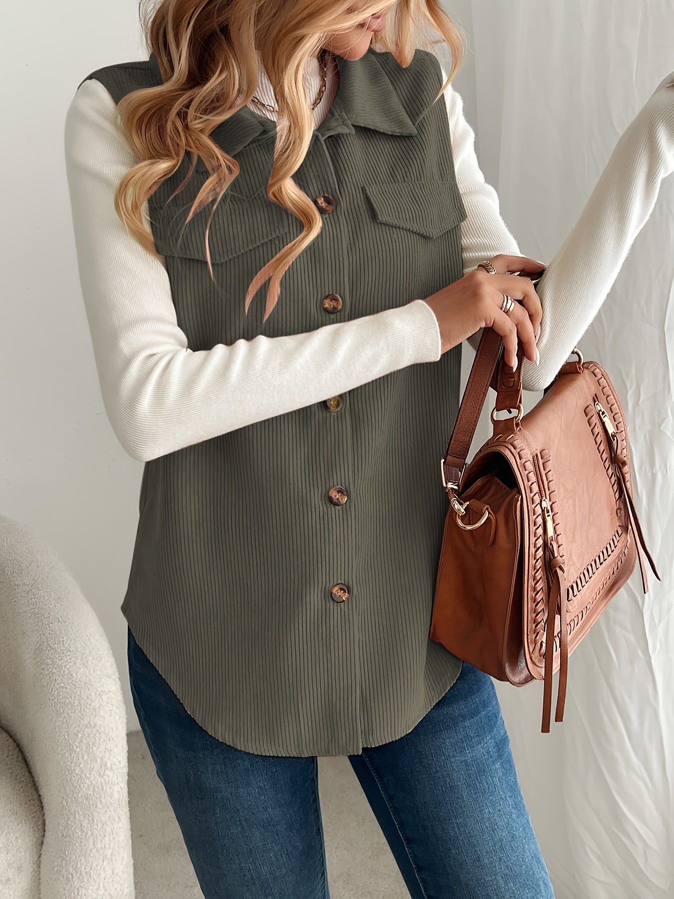 Women’s Corduroy Sleeveless Coat – Casual Layering for Spring & Fall